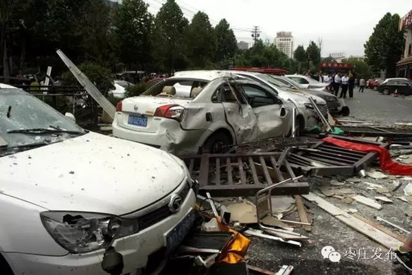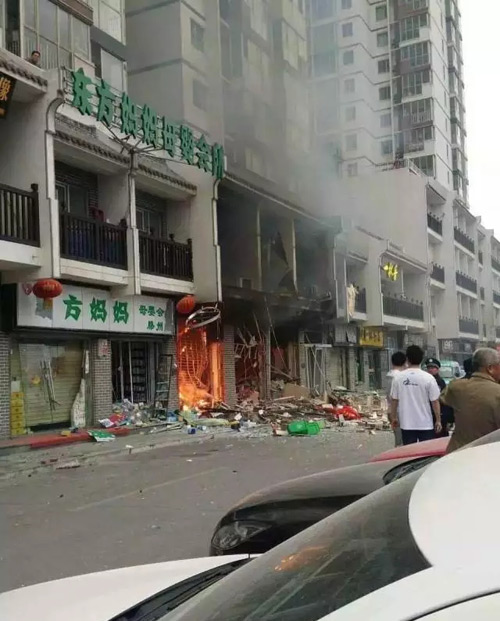 5月8日,滕州九州清晏小区沿善国路一家韩式料理店发生爆燃事故,剧烈的爆炸声将在睡梦中的居民惊醒,爆炸所产生的冲击波致使附近二十多辆车不同程度受损,一路之隔大约50米的对面营业房也被波及,玻璃破碎。