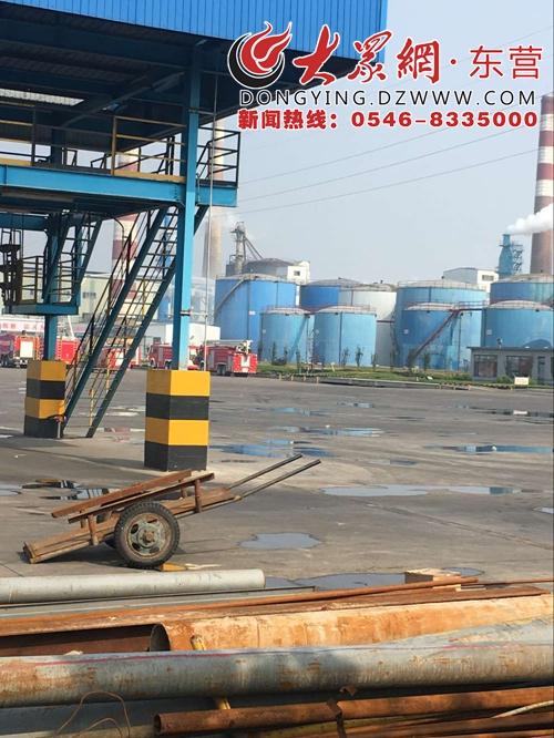 今天上午,有网友反映,东营区史口镇一家化工厂疑似发生爆炸,根据网友提供的现场视频显示,浓烟中夹杂着火光。上午11时左右,记者赶到出事的山东龙源化工有限公司,厂区门口的设置了警戒线,仍有消防车进入厂区,厂区内已无明火,有消防车正在对罐体进行喷水降温。记者从东营区政府了解到,事故发生在早上8时15分许,起火的为该厂一储油罐,目前事故处理正在进行,事故原因还在调查中,未造成人员伤亡。