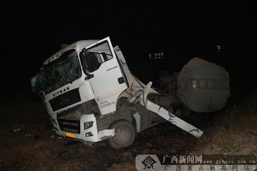广西南宁30吨浓硫酸罐车侧翻泄露流入农田