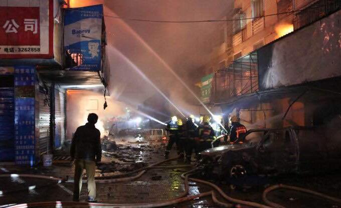 红网岳阳分站1月25日讯(通讯员 岳文)2017年1月24日21时08分许,湖南省岳阳市岳阳经开区中南大市场内一烟花爆竹经营门店突发火灾。初步查明,事故已造成5人窒息死亡,事故原因为购炮者在门店10米外试炮不慎,引发店内烟花爆竹起火。由于消防官兵奋力扑救,火灾已于23时20分扑灭。
