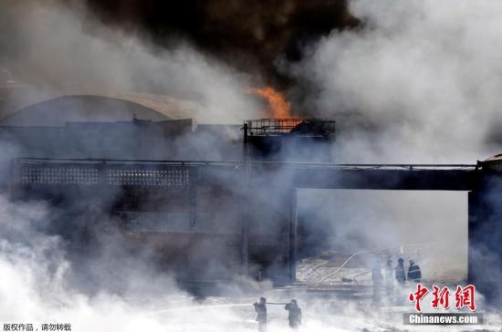 巴西一化学工厂发生大火浓烟翻滚 消防员紧急灭火