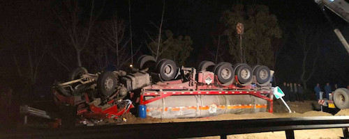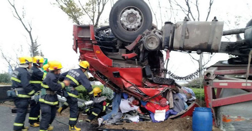 江苏苏州一危化品车侧翻 致1死1伤