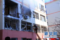 1月22日,消防人员在威海市区竹岛路发生疑似天然气爆炸事件的居民楼前灭火。据山东省威海市相关部门介绍,威海市区竹岛路一居民楼22日8时许发生疑似天然气爆炸事件,目前已致一
