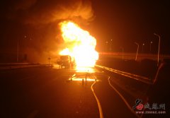 7月17日20时许,浙江玉环县漩门菜场农大厂门前,一辆装有20吨天然气的槽罐车发生泄漏事故,如不及时处置,随时有爆炸的危险。一经过的群众看到后,立即拨打了119报警。玉环消防大