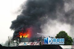 3日下午5点50分,江海区礼乐礼义三路附近,消防官兵不时用高压水枪对燃烧的罐体进行降温。 3日16时许,江门市江海区礼乐新润丰油库一储油罐失火,火焰腾起十余米高,滚滚浓烟冲