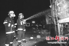 13日凌晨4点25分,遂溪消防中队接到119报警:高速路杨梅出口往茂名方向一槽罐车与一货车追尾,槽罐车上满载200号浓剂,已发生泄漏,槽罐车上有一人被困,情况万分紧急。遂溪中队