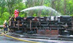 7月17日凌晨3时04分,潍坊市昌乐县宝通街与大沂路交叉路口突然发生一起车祸,导致大量甲基叔丁基醚泄露,随时有燃烧爆炸的危险。接到报警后,宝城中队立即调派4辆消防车、共20名