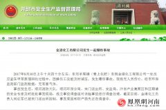 网站截图 8月30日,据开封市安全生产监管管理局官方网站发布消息称,上午10:40左右,东郊羊尾铺(青上化肥)东侧开封市金港化工有限公司一处反应釜在甲苯蒸馏回收过程中,因操作