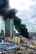 起火点冒起浓烟 数支水枪控制火场 12月21日上午11点左右,一张黑烟笼罩高楼的图片传遍朋友圈。黑烟中的高楼是斗南花卉市场附近的鑫盛达大厦(将近30层),目击市民称,在兴呈路方