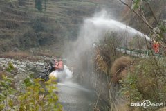 12月5日中午,郴州桂阳县一处县道发生交通事故:一辆载有28吨汽油的油罐车与山体发生碰撞,并发生泄漏。接到报警后,桂阳县消防中队出动3辆消防车前往现场处置。同时郴州支队指