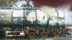 22日凌晨许,京港澳高速清远段一辆装载硝酸的槽罐车发生交通事故后出现泄漏,车身着火、硝酸不断向外挥发,情况危急。接到报警后,当地有关部门迅速组织救援,消防官兵迅速将