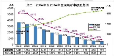 | 图二 2004年至2014年全国煤矿事故趋势图 |