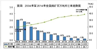 | 图四 2004年至2014年全国煤矿百万吨死亡率趋势图 |