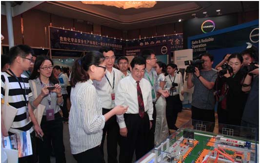 9月21日上午,国家安全生产监督管理总局党组成员、总工程师王浩水,中国化学品安全协会理事长、中国海洋石油总公司总经理刘健,国际化学品制造商协会主席赵赋斯,中国工程院院士、北京化工大学教授高金吉,南京市人民政府常务副市长刘以安,江苏省安全监管局局长陈正邦,美国化学工程师协会化工过程安全中心技术总监路易莎•娜拉,国家安全监管总局化学品登记中心主任孙万付,国务院安委会专家咨询委员会理论与法制研究专业委员会专家、中国化学品安全协会副理事长张广华,南京市安全监管局局长刘伟等出席开幕式并参观展览。开幕式由国家安全生产监督管理总局国际交流合作中心主任陈江主持。王浩水一行参观展览