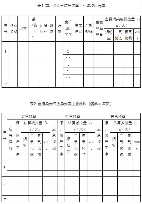 (三)落实重污染天气应急预案项目清单。各地要强化应急预案实施效果,将应急预案目标和任务要求落实到企业项目清单中,明确不同级别应急响应企业限产限排措施,并把减排措施细化到具体生产工序和停限产设备,确保措施可操作、可计量、可核实(见附件3、4)。