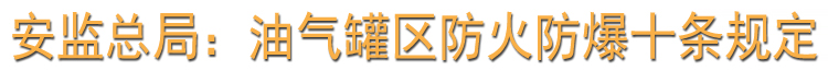 国家安全生产监督管理总局令 第84号 《油气罐区防火防爆十条规定》已经2015年7月30日国家安全生产监督管理总局局长办公会议审议通过,现予公布,自公布之日起施行。 局长 杨栋梁