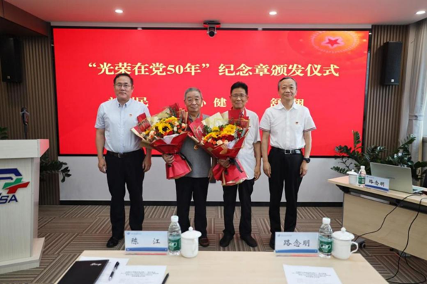 路念明表示,“光荣在党50年”纪念章是党中央自2021年起颁发的纪念章,旨在表彰党龄达到50周年且一贯表现良好的党员。老党员们将青春和热血献给了党和人民,在各自的岗位上默默耕耘,为社会发展建设作出了积极贡献。希望老党员们退休不褪色、离岗不离党,继续关心支持行业协会商会的改革发展。希望广大党员以老党员为榜样,在新时代新征程中踔厉奋发、勇毅前行,为行业协会商会高质量发展贡献力量,让党的事业在传承与奋斗中不断焕发新的光彩。