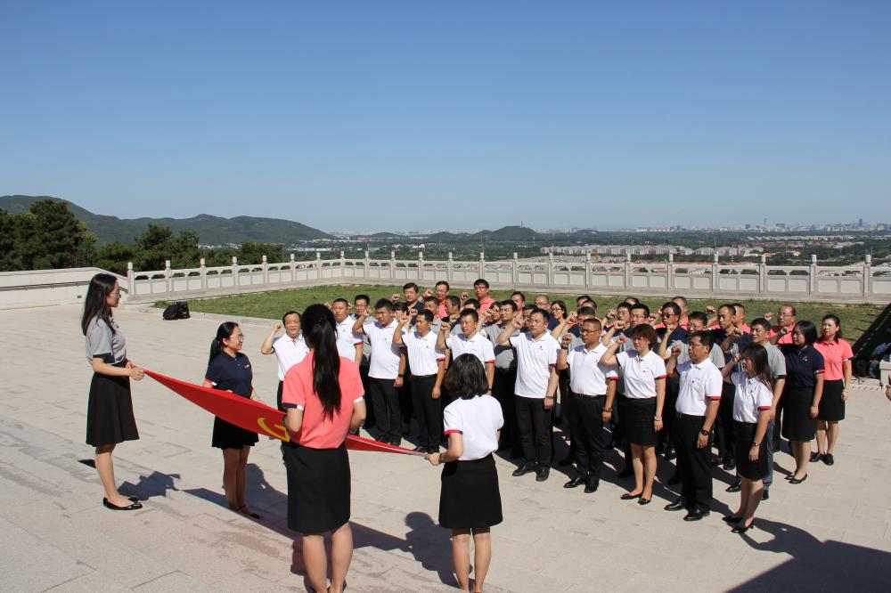 烈日骄阳下,在认真聆听完关于那段历史的讲解后,大家向无名英雄纪念碑三鞠躬,深切缅怀革命先烈,表达敬仰之情。此后,在协会党支部书记、副理事长、秘书长路念明的带领下,全体党员在纪念碑前面对着鲜红的党旗,高举右拳,字字铿锵地重温了入党誓词:“我志愿加入中国共产党……”