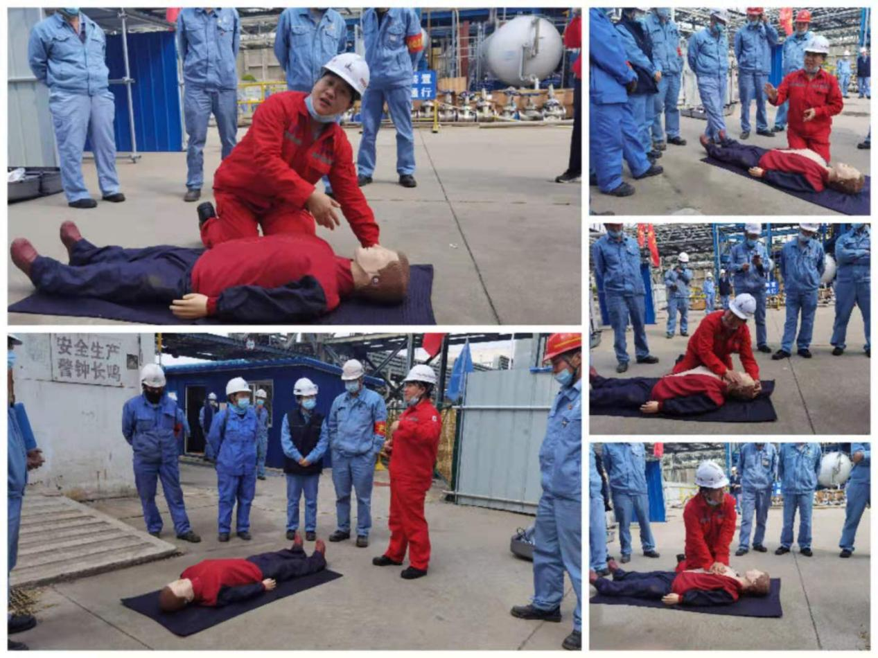 4月26日上午,胡安云、王秀玲两位同志还来到燕山石化东方有机厂VAC检修现场,为现场“双监护”人传授CPR急救知识。胡安云以实操模拟的形式,通过系统的讲解和现场教学,让在场人员掌握心脏按压与人工呼吸的操作要领及注意事项,提升现场监护人的应急处置能力。