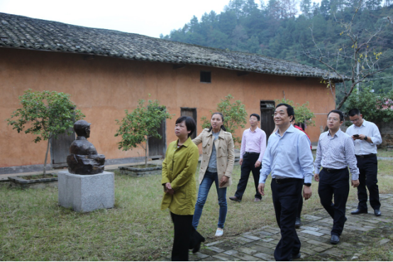 捐建同心村党建工作室启动仪式结束后,路念明一行来到池江镇陈毅旧居调研及参观学习。在一个个斑驳的历史遗迹、一幅幅历史资料面前,路念明一行驻足观看,认真聆听讲解。