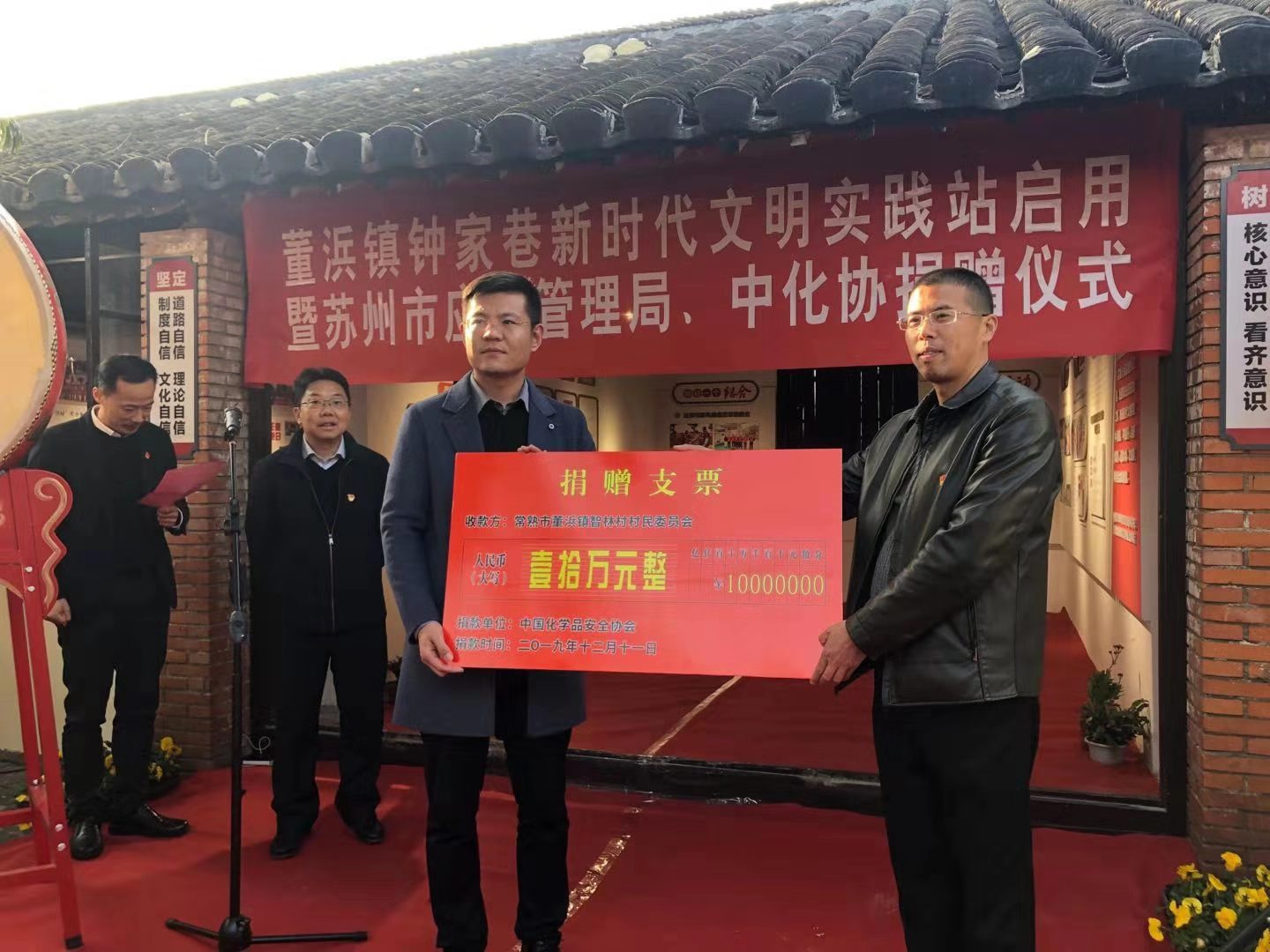 中国化学品安全协会苏州常驻服务项目专家组自今年5月成立以来,在为企业开展隐患排查、本质安全诊断和量化评估,助力政府部门安全监管专业化的同时,主动与苏州市应急管理局党组织结对共建,开展“不忘初心、牢记使命”联学活动,深入学习贯彻习近平新时代中国特色社会主义思想,把守初心、担使命落到安全服务一线。此次出资帮扶建设董浜镇钟家巷新时代文明实践站,旨在响应习近平总书记“要动员全党全国全社会力量,坚持精准扶贫、精准脱贫”的号召,解决农村基层宣传思想文化工作和精神文明建设在哪做、谁来做、做什么的问题。