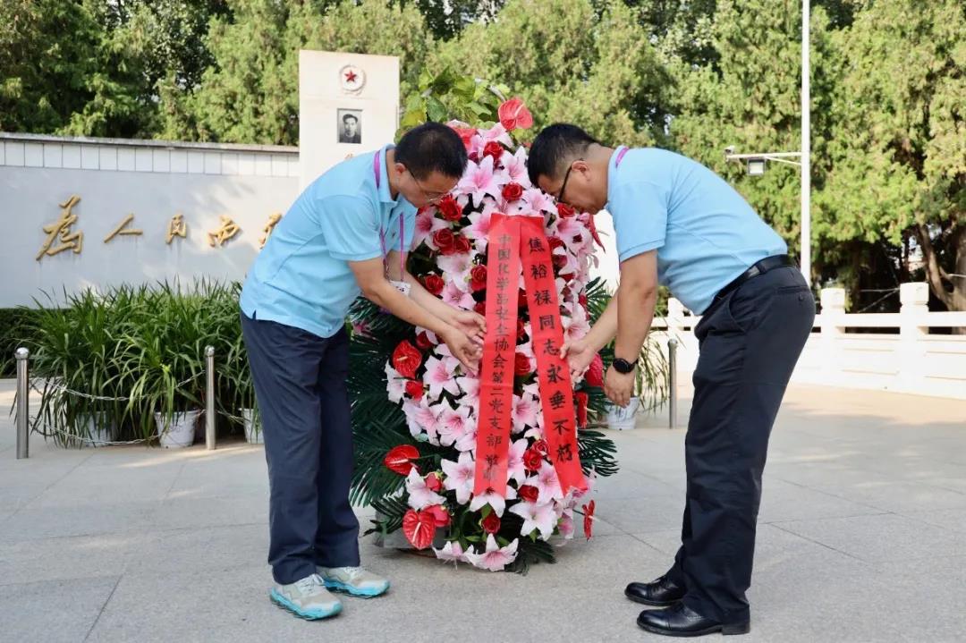 在焦裕禄同志的陵墓前,大家怀着崇敬的心情举行了简洁而庄重的拜谒仪式。协会党委委员、副秘书长郝军和协会总工程师程长进作为代表向焦裕禄同志敬献花篮,全体党员群众向焦裕禄烈士墓三鞠躬,表达对焦裕禄同志的敬仰与缅怀之情。