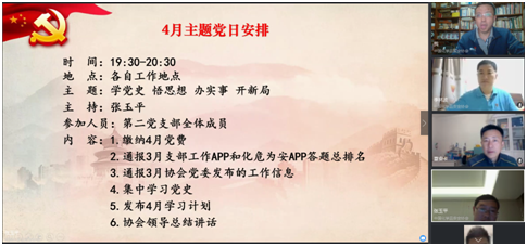 4月10日晚,中国化学品安全协会第二党支部通过视频会议的形式组织开展以“学党史 悟思想 办实事 开新局 ”为主题的四月主题党日。