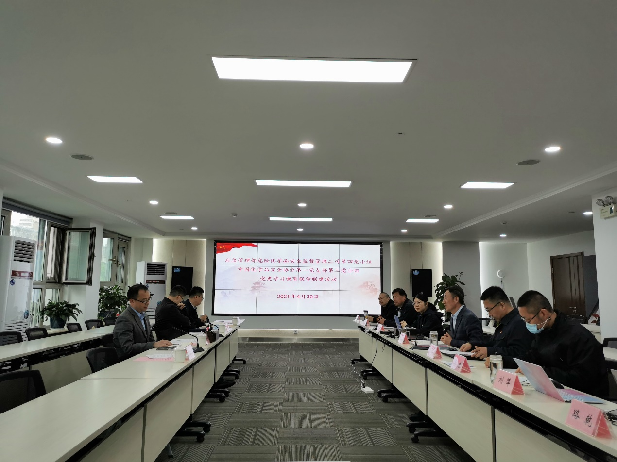 4月30日上午,协会第一党支部第三党小组与应急部危化监管二司第四党小组开展党史学习教育联学联建活动,学习习近平总书记关于安全生产重要论述和职业教育的重要指示。会议由协会第一党支部纪检委员房志东主持。