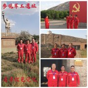 2021年6月8日下午5点30分,结束一天的安全检查工作后,中国化学品安全协会乌海海南项目部组织党员去参观内蒙古乌海六五四小三线军工遗址。 四名党员身穿红色化学品协会工装,三名