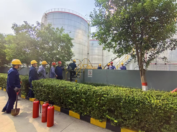 检验方案是否有效,现场说了算。8月初,中化协专家在安全培植辅导期间,对化工分厂进行了煤焦油储罐火灾模拟演练的突击抽查。在煤焦油 V-1303 储罐区,分厂管理人员在未提前告知的情况下,按下手动火灾报警按钮,车间员工于1分39秒内全部到达指定位置,按方案完成关阀断料、灭火救援、警戒疏散等关键动作,体现了应急响应的精准与高效。