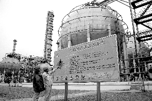 随着大唐多伦煤化工公司丙烯项目的稳定运行生产,化工区各装置内充满了有毒有害、高温高压、易燃易爆的危险介质。为了保证现场安全,该公司安全管理部门对厂区1600多块安全标识、危险物品告示牌、消防标识等安全提示牌进行了更换,让一线员工对工作点的危险因素一目了然。图为5月1日,该公司2名员工正在丙烯罐区安全告知栏前查看丙烯的危险因素。