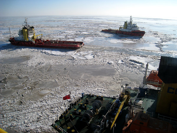 进入2016年以来,受持续低温影响,辽东湾海域出现大面积海冰。面对冰情考验,渤海石油管理局辽东作业公司锦州9-3油田群全力应对,加大监测力度,强化破冰船值守,确保油田群生产及外输作业安全。