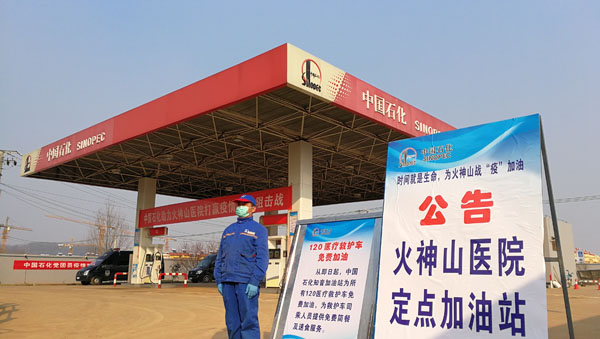 中国石化为火神山医院救护车免费加油