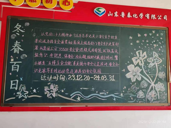 为深入贯彻集团公司统一部署,扎实做好岁末年初和冬春两季的安全生产工作,确保2024年各项工作开好头、起好步,12月20日,山东鲁泰化学有限公司启动“冬春百日安全竞赛”活动。本次活动到2024年3月31日结束。