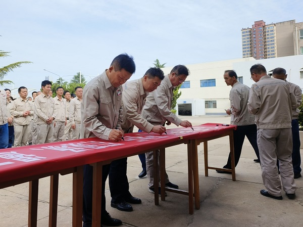 公司机械修造部、合成车间负责人在启动仪式上分别作了表态发言,全体参加活动人员在百日安全行动主题横幅上签名。