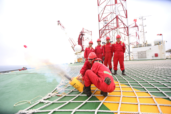 10月30日,“海洋石油941”在新抛绳器到货后,整理即将报废的抛绳器,开展实战练兵。抛绳器用于海上船只或作业人员危险情况下发射绳子,寻求邻近船只靠拢救助,是集火箭、引燃器和抛绳装置于一体的组件。