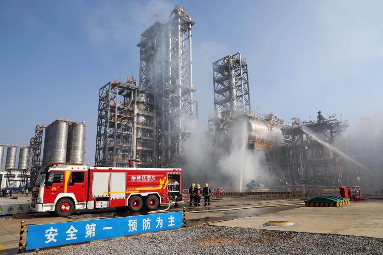 榆能化举行2019年度危化品泄漏企地联防应急演练