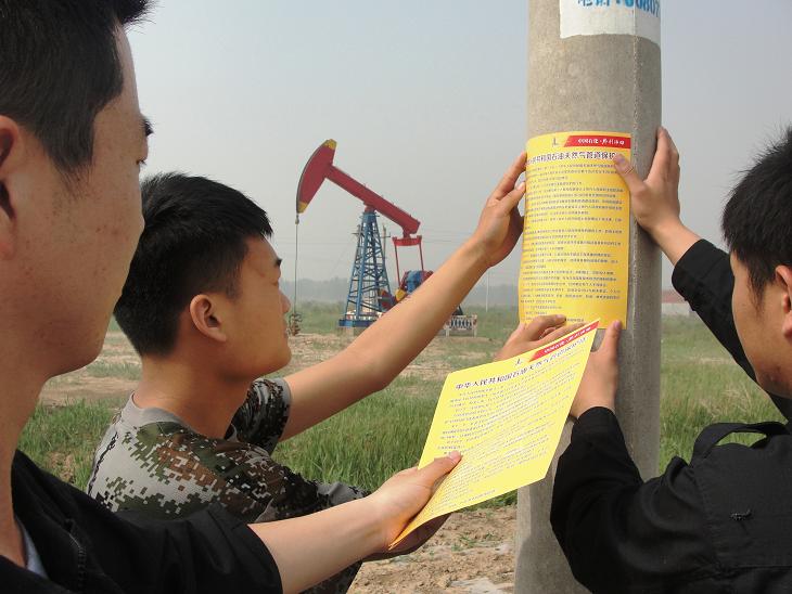 图二:张贴《石油天然气管道保护法》进行法制宣传。