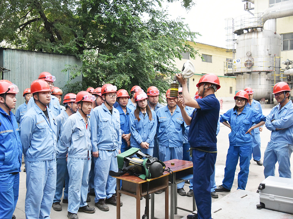 天脊集团安全管理部消防应急救援大队采取理论与实践相结合、指导与服务相结合、示范与纠正相结合、提问与抽查相结合的形式,派出作风硬、业务精的技术骨干,走进车间,直到班组,面对面向岗位职工认真细致的讲解防护器材使用知识。培训中,他们立足岗位实际、注重培训效果,或先讲解先操作再提问,或先实践再互动再讲解,灵活的培训方式,激发大家主动学应急学防护学技能的积极性,增强应急操作技能,真正实现人人讲安全、个个会应急。