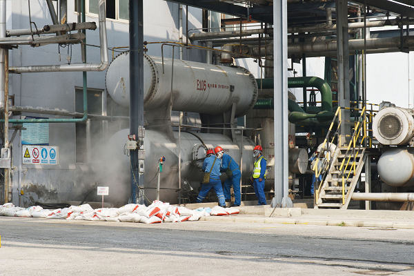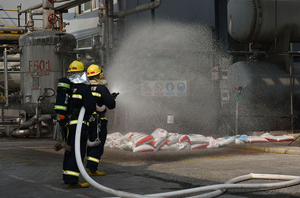 9月27日,潞安化工天脊集团组织开展氨储液槽人孔法兰泄漏应急演练,检验各级人员对突发事故的应急处置能力。