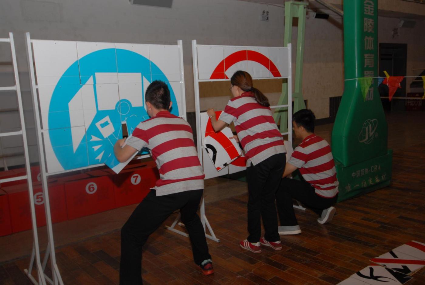 图 职工正在进行安全标志图拼接
