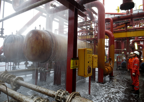消防系统是海上设施安全的关键设备,定期维护保养才能确保消防系统随时处于备战状态。南海东部流花油田作业区“南海胜利”号FPSO每季度都对全船喷淋系统进行测试,做到有备无患。