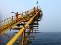 目前,文昌13-6油田14-3A平台整体防腐作业正在进行。平台火炬系统的防腐是整个作业中的难点,火炬架伸出平台舷外,距离海面垂直高度约40米。为 了给防腐作业人员架设安全的作业地