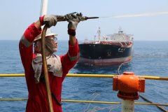 4月26日中午,榆林湾号油轮靠泊海洋石油111FPSO进行提油作业。五一假期,海洋石油111将有150人坚守在海上一线,参加投产13年来最大一次停产大修。本次外输原油47.1万桶,为停产大修降