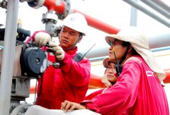 1月15日,维修班长赵维科(左一)带领检修1班员工对全厂紧急切断阀进行日常维护测试。 2015年,气电集团珠海液化将班组建设达标活动与党员进班组活动相结合,在公司14个班组内设