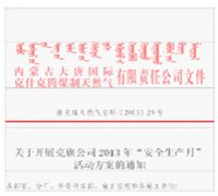 为了把安全生产月活动组织好并取得实效,克旗公司提早动手,在制定并下发公司《安全生产月活动方案》的同时,订购了2013年安全生产月主题宣教片《安全发展成就辉煌》、警示教育