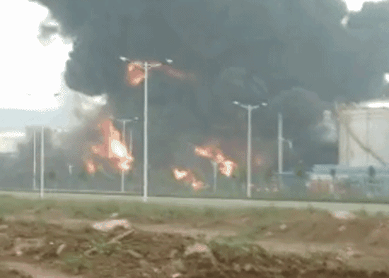 2009年7月12日,乌鲁木齐石化炼油厂建北罐区13#石脑油罐(内浮顶罐)发生火灾爆炸事故。事故原因是储罐浮盘落底,液位持续下降,大量空气吸入并充满油罐气相空间,因罐壁长期受硫化氢腐蚀,防腐层脱落,生成的硫化亚铁与空气接触发生氧化反应放热,造成气相空间爆炸。