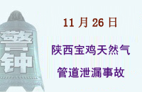 2013年11月26日,宝鸡市一路上的天然气管道被施工人员不慎挖断,造成大量天然气泄漏,紧急疏散居民500余人。