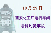 1997年10月29日,陕西西安化工厂电石车间在临时停电检修电炉时,发生塌料灼烫事故,造成3人死亡,5人受伤。