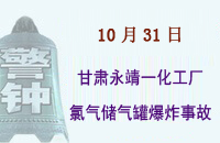 2008年10月31日,甘肃省永靖县一化工厂发生氯气储气罐爆炸事故,造成1人死亡,41人受伤。